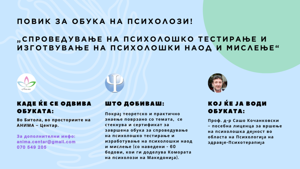 - Имаш потреба од стекнување на дополнителни знаења и вештини за користење на психолошки инструменти и изготвување на психолошки наод и мислење.